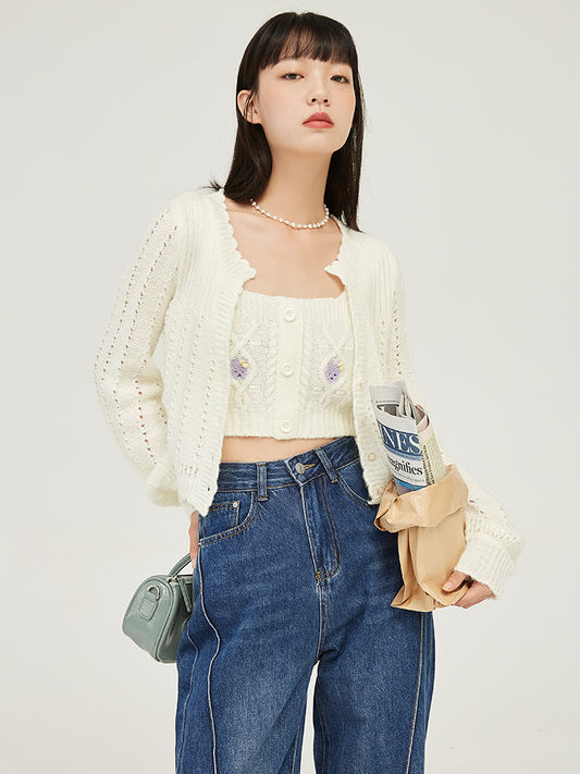 Two-piece Knitted Cardigan Women's Autumn Sling