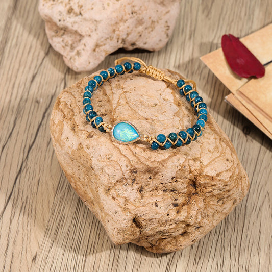 Cross-border Natural Stone Bracelet Water Drop Shape Sapphire Couple Woven Bracelet