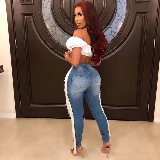 Casual ruffled fringed jeans