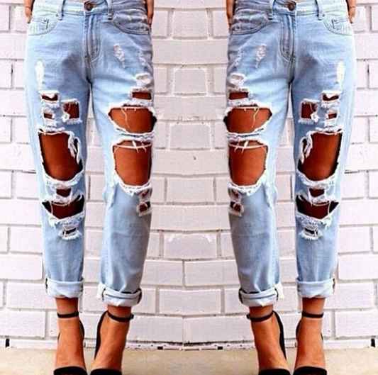 New Women's Denim Trousers With Ripped Holes And Washed Thin