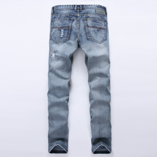 Skinny Stretch Men Washed Ripped Biker Jeans