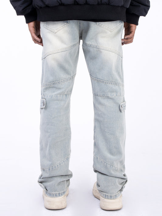 Straight Loose Jeans Men Casual Trousers Hip Hop Cargo Denim Pants With Zipper