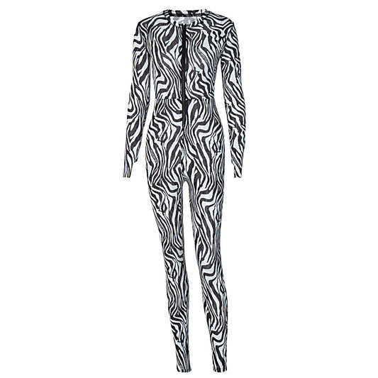 Foreign Trade Hot Products Spring And Summer Amazon New Fashion Printed Zipper Yoga Sports Fitness Jumpsuit Women