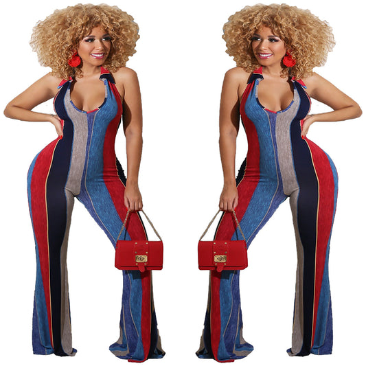 Wear Fashionable Striped Printed Wide-Leg Jumpsuits
