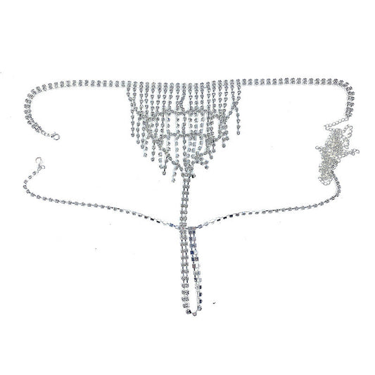 Rhinestone Claw Chain Body Chain Set Sexy Bra Panty Set Lingerie Show