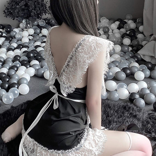 Lingerie Cat Girl Hollow Breast Exposure Slim Nightdress Set