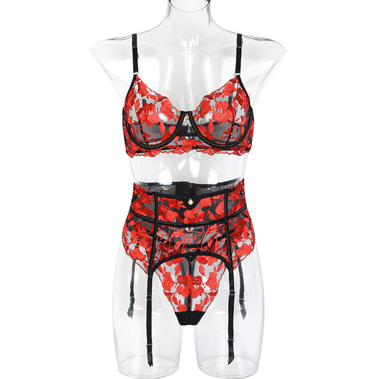 Fancy Lingerie Woman Floral Embroidery Set Und