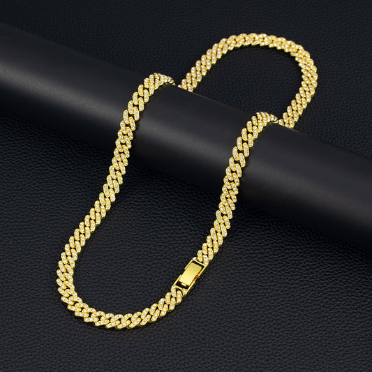 9mm Cuban Link Chain Alloy Single Row Drill Men's Necklace
