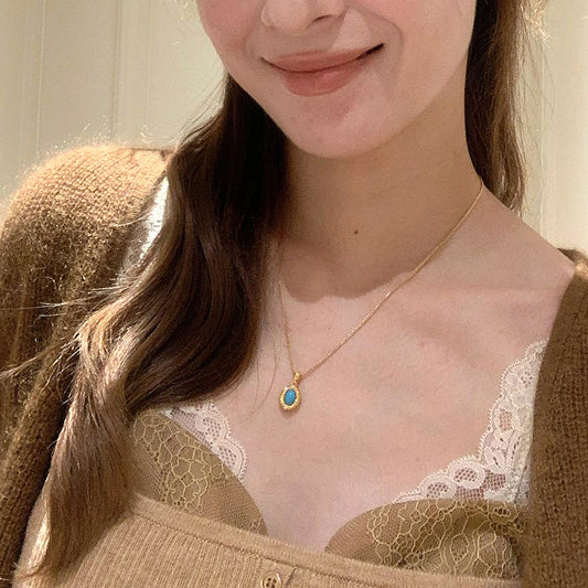Retro Turquoise Necklace Shining Stars Blue Green Pine Hanging
