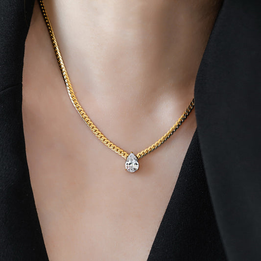 Water Drop Zircon Snake Bone Necklace Clavicle Chain
