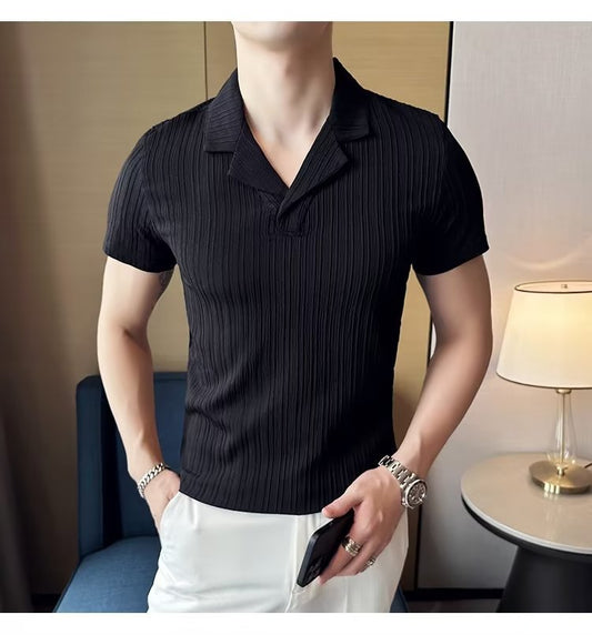 Men's Fashion Casual Polo Collar Striped Short-sleeved T-shirt