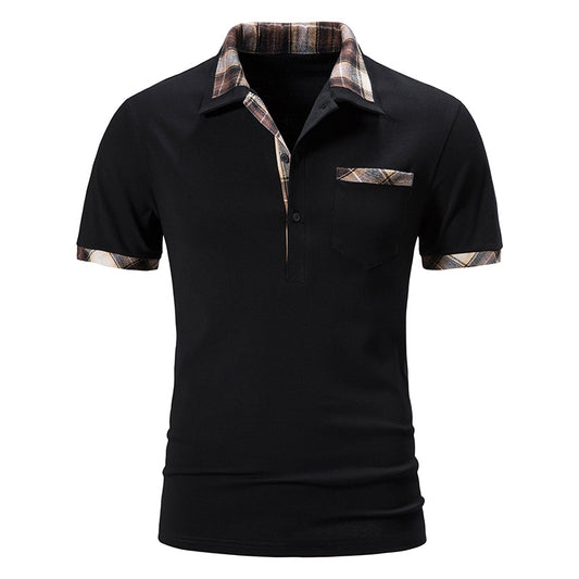 New Summer Short Sleeve Basic Lapel Polo Shirt Men's Plaid Colorblock T-shirt Top