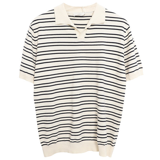 V-neck Ice Silk Striped Polo Shirt Men's Short-sleeved Lapel T-shirt