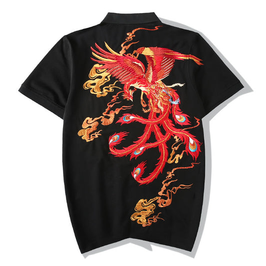 Machine Embroidery Phoenix Pure Cotton Polo Collar Top