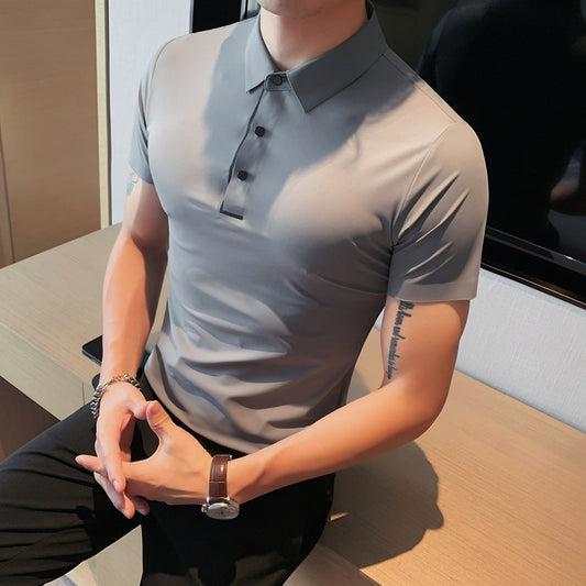 New Men's Ice Silk Drape Polo Shirt Seamless Stretch Lapel T-Shirt