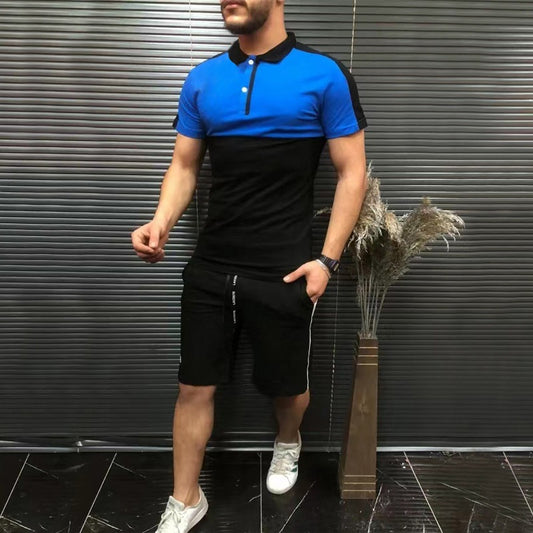 New Men's Casual Suit Lapel POLO Shirt Shorts Casual Suit