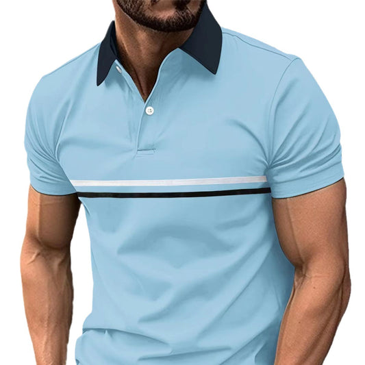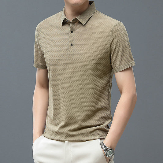 Men's Stand-Up Collar Short-Sleeved Polo Shirt Business Casual Solid Color Polo Shirt