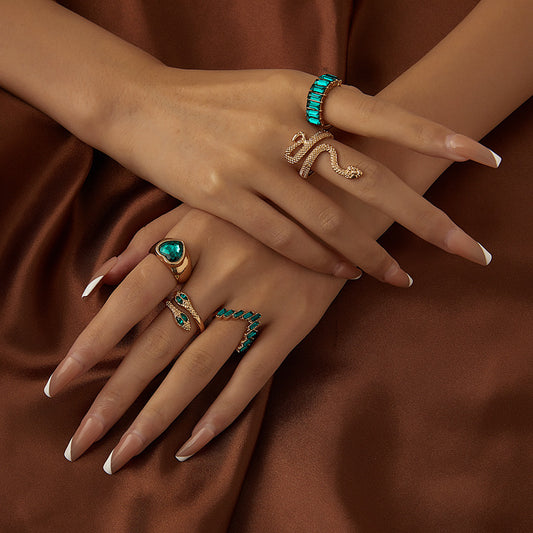 Snake-shaped Love Emerald Diamond Five-piece Ring For Women