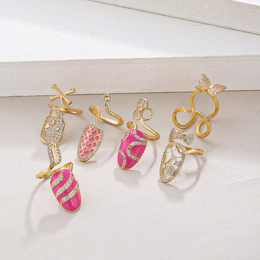 Zircon Oval Alloy Refined Personalized Dripping Nail Ring For Women