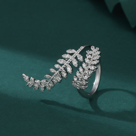 Micro-inlaid Diamond Super Shiny Leaves Open Ring For Women