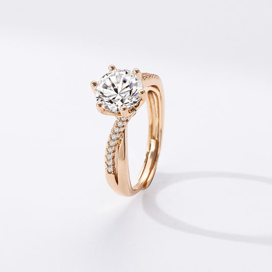 Women's Adjustable Fashionable Golden 925 Sterling Silver Diamond Ring