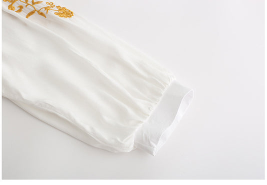 V-neck Embroidered Loose Dress Embroidered Long Skirt