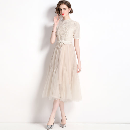 Slim Fit Slimming Round Neck Beaded Classic Style Dress