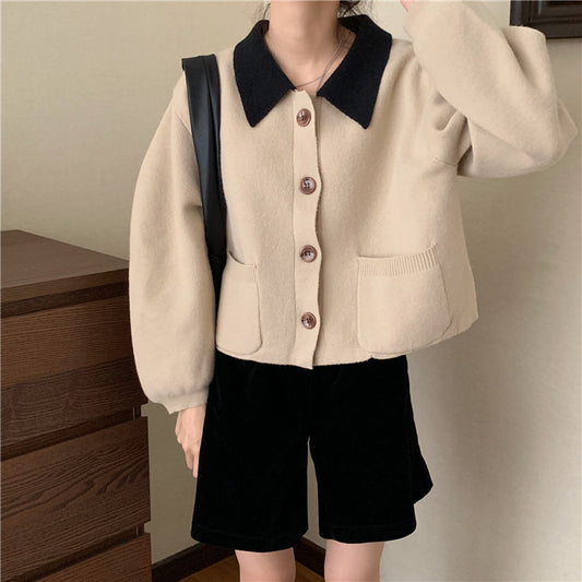 Soft Lapel Double Zipper Loose Long Sleeve Knitted Sweater For Women