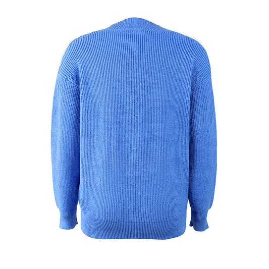 High Collar Long Sleeve Knitted Solid Loose Sweater For Women