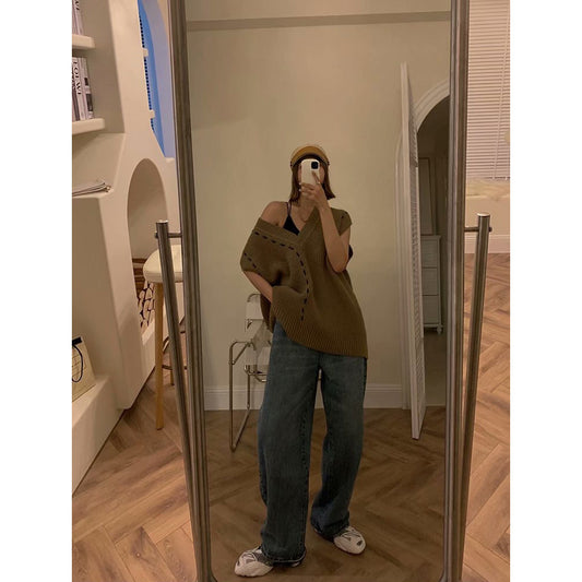 Net Red Sleeveless Knitted Sweater Vest For Women