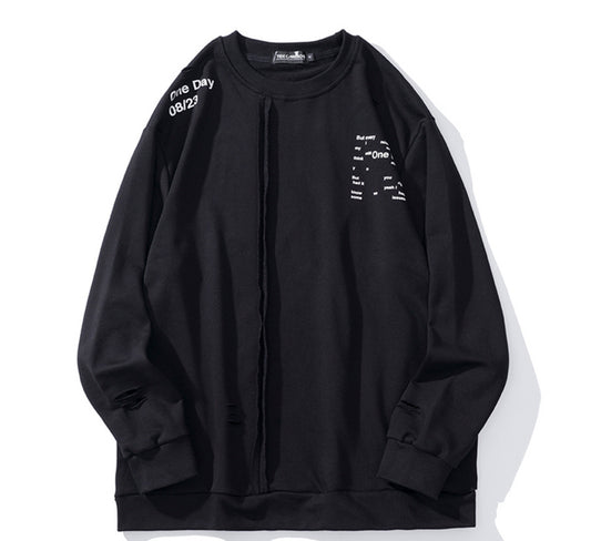 European And American High Street Cut Ripped Hole Patch Sweater Men