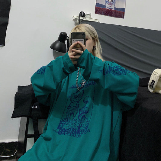 Fleece-lined Hooded Printed Long-sleeved Basic All-matching Sweater