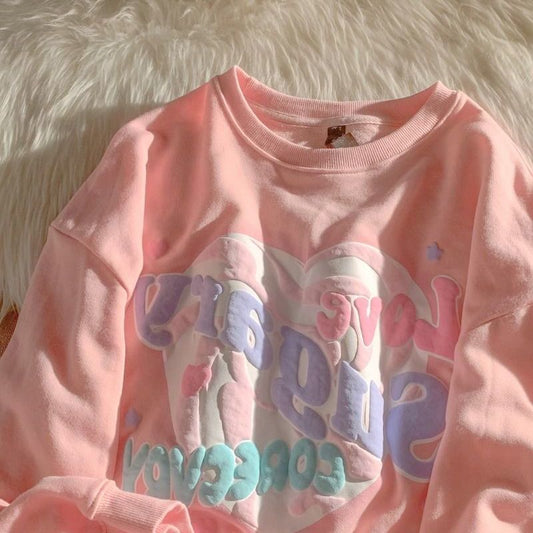 Women's Autumn Couple Loose Niche Design Love Foaming Sweater