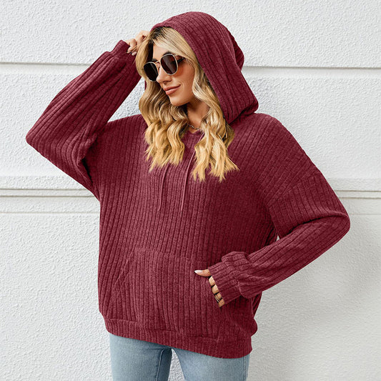 Knitted Sweater With Hooded Pit Stripe Kangaroo Pocket Sweater