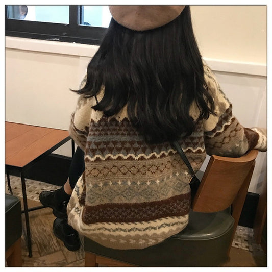 Loose Pullover Print Long-sleeved Round Neck Women's Sweater