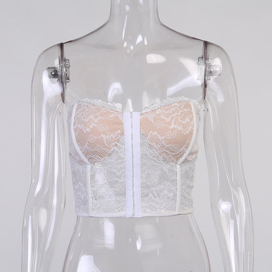 SUCHCUTE Sexy Sleeveless Hook Lace Corset Crop Top For Women Party Clubwear Tube Top 2000s Aesthetic Flower Print Tank Tops
