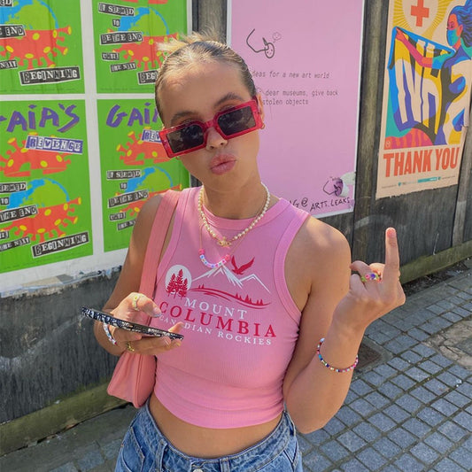 Letter Print Sleeveless Short Tops For Women