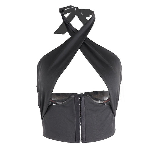 Cryptographic Breasted Sexy Halter Wrap Crop Tops Women
