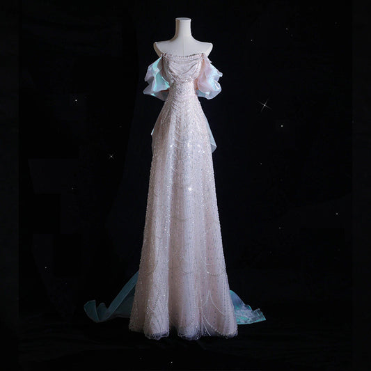 New Off-shoulder Sequined Fishtail Welcome Light Wedding Engagement Dress