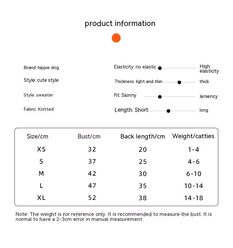 Size: XS (recommended weight 0.50kg-2.00kg,S (recommended weight 2.00kg-3.00kg,M (recommended weight 3.00kg-5.00kg,L (recommend weight: 5.00-7.00, XL (recommend weight: 7.00-9.00