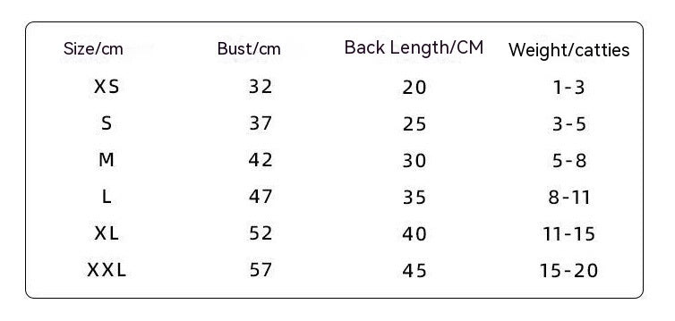 Size: XS (recommend weight 0.50 kilograms-1.50 kilograms, S (recommend weight 1.50 kilograms-2.50 kilograms, M (recommend weight 2.50 kilograms-4.00 kilograms, L (recommend weight 4.00kg-5.50kg, XL (recommend weight 5.50kg-7.50kg