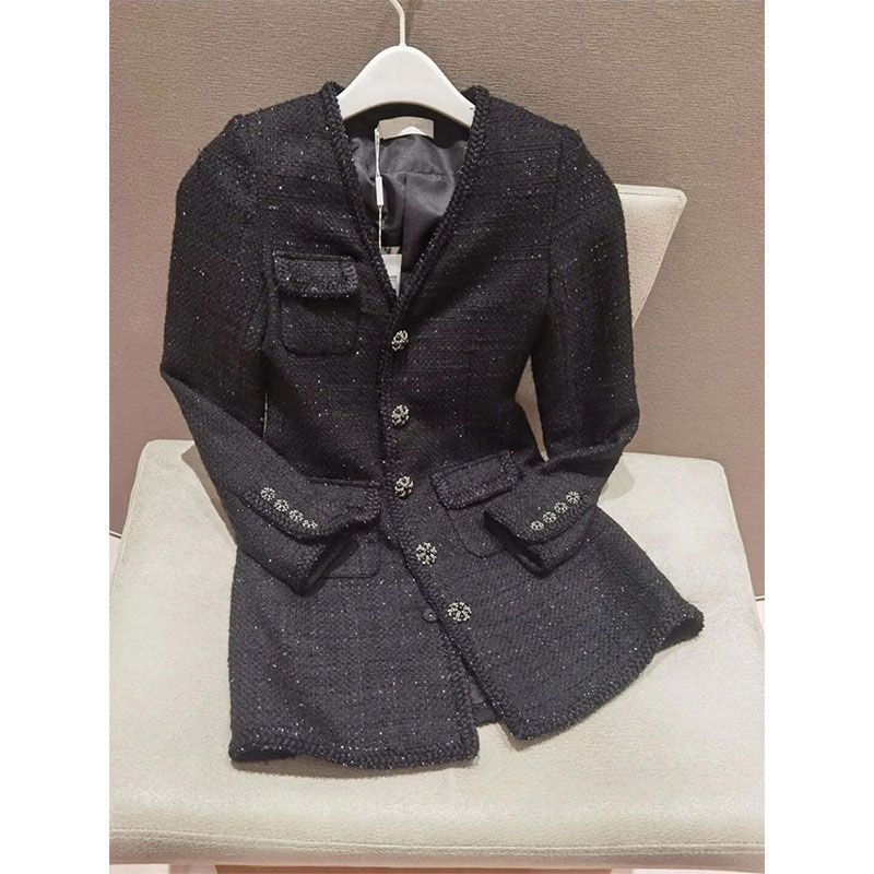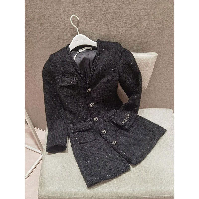 Classic Style Tweed Heavy Industry Rhinestone Lace Sleeveless Vest Dress