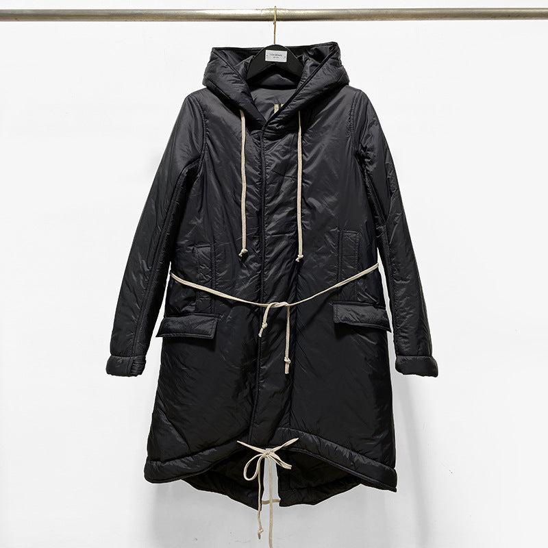 Long Lace Up Hoodie With Cotton Thick Trench Coat For Men And Women