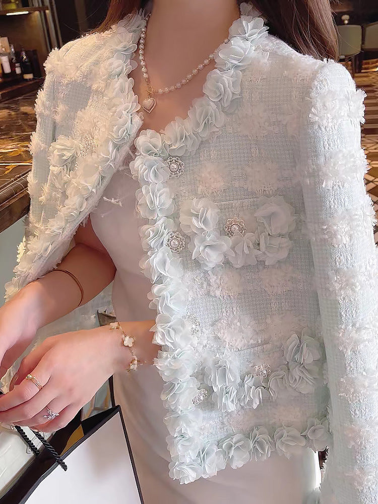 Classic Style Tweed Heavy Industry Rhinestone Lace Sleeveless Vest Dress