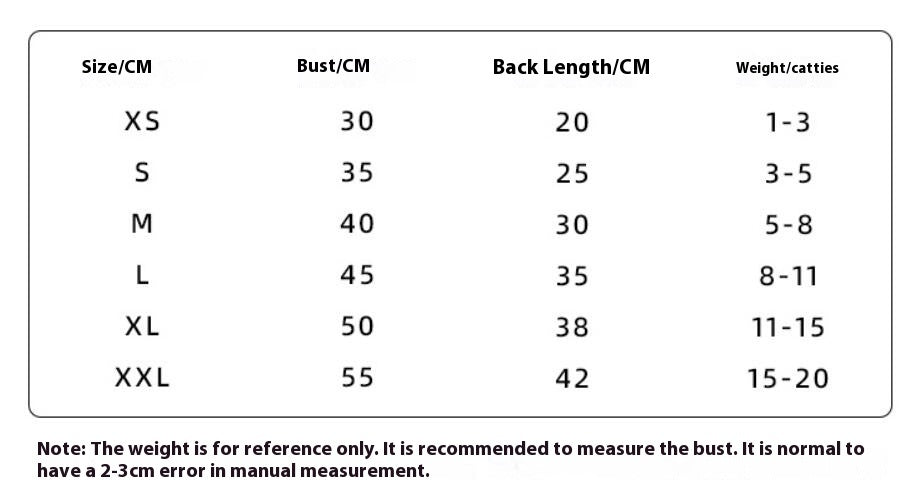 Size: XS (recommend weight 0.50 kilograms-1.50 kilograms, S (recommend weight 1.50 kilograms-2.50 kilograms, M (recommend weight 2.50 kilograms-4.00 kilograms, L (recommend weight 4.00kg-5.50kg, XL (recommend weight 5.50kg-7.50kg, XXL (recommend weight 7.50kg-10.00kg