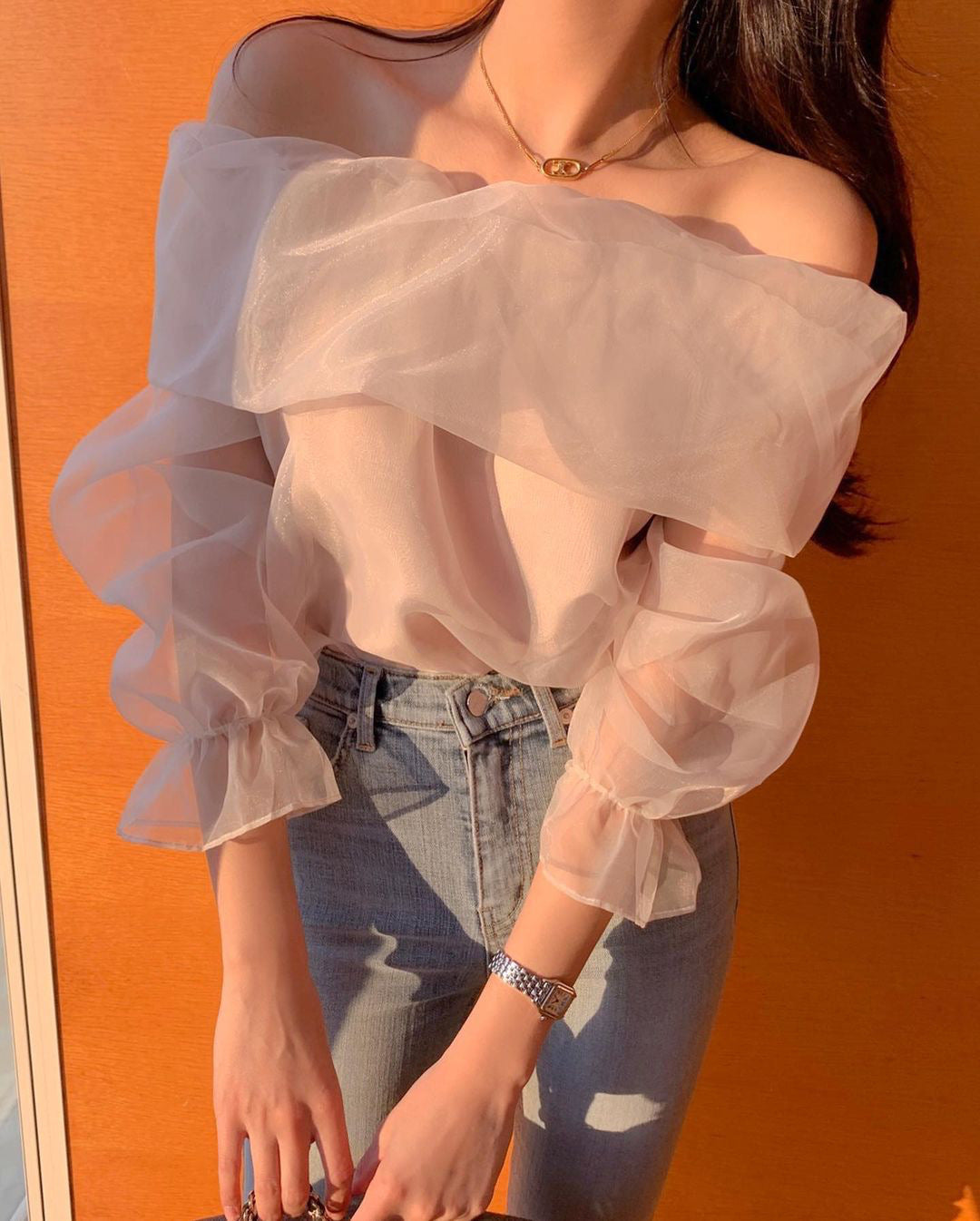Women's One-shoulder Super Fairy Design Transparent Mesh Top